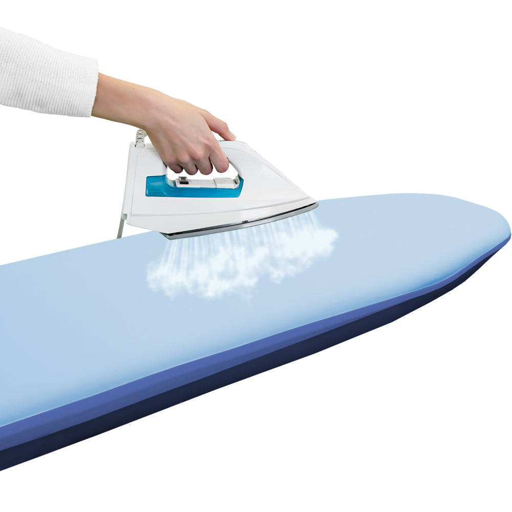 So verfügt die Oberfläche des Stoffs über eine besondere Beschichtung, die die Gleitfähigkeit der Bügelsohle erhöht und gleichzeitig verhindert, dass die Wäsche auf dem Bezug rutscht. Sie sparen dadurch wertvolle Zeit und Energie.