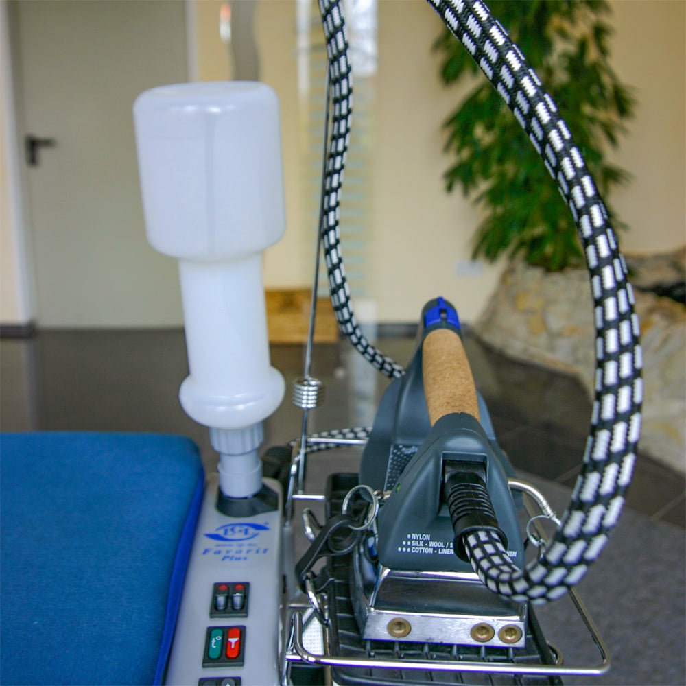 Der Federverschluss im Flaschenkopf stoppt den Wasserfluss, sobald der Dampfkessel die richtige Menge an Wasser aufgenommen hat. Durch diese richtige Befüllung des Dampfkessels wird Wasseraustritt am Bügeleisen vermieden.